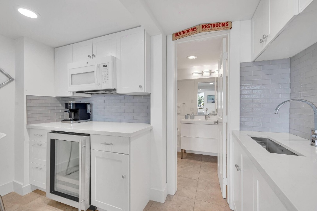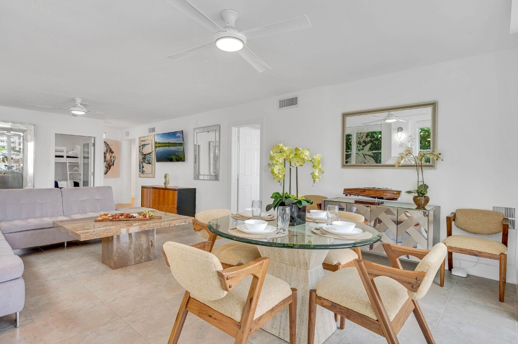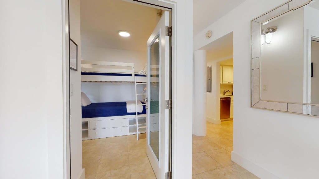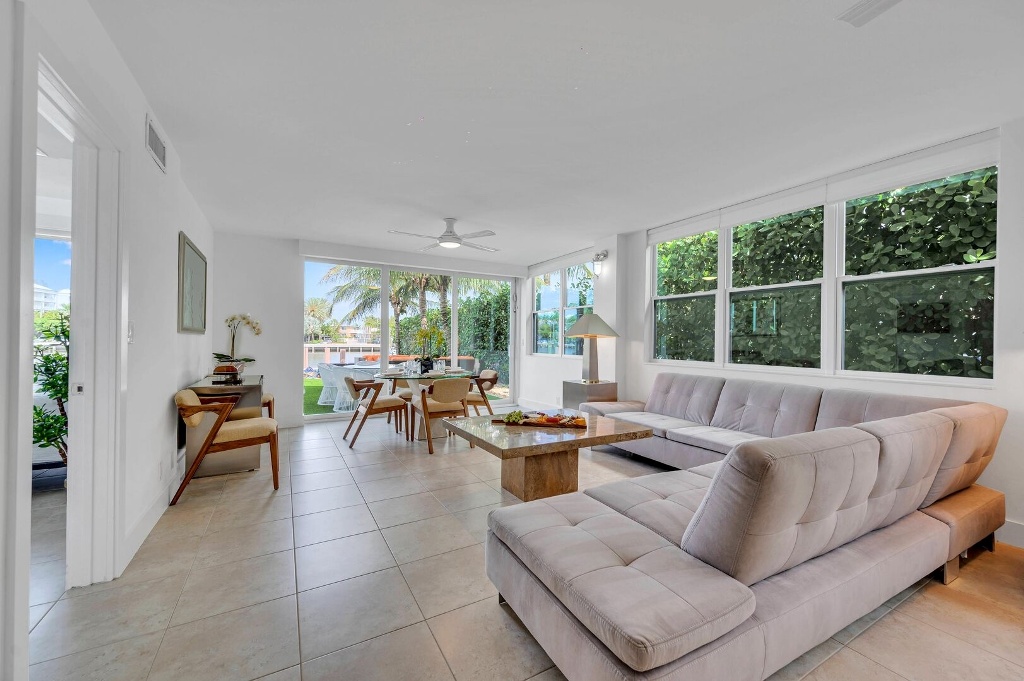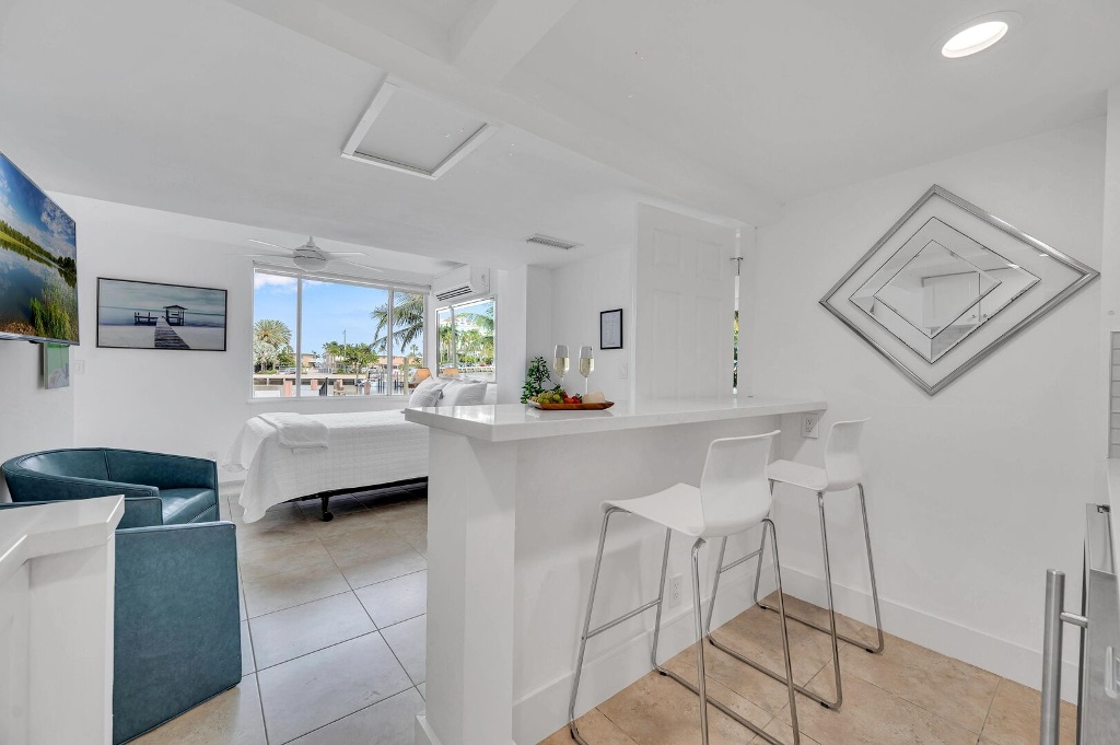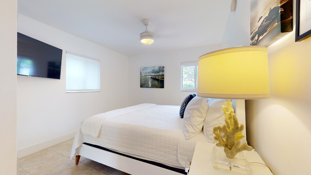 Located on the first floor of this modern retreat, this ample suite offers waterfront views and tranquility. Enjoy the comfort of the common heated pool, lounge areas, dock, al fresco dining and a grilling area.